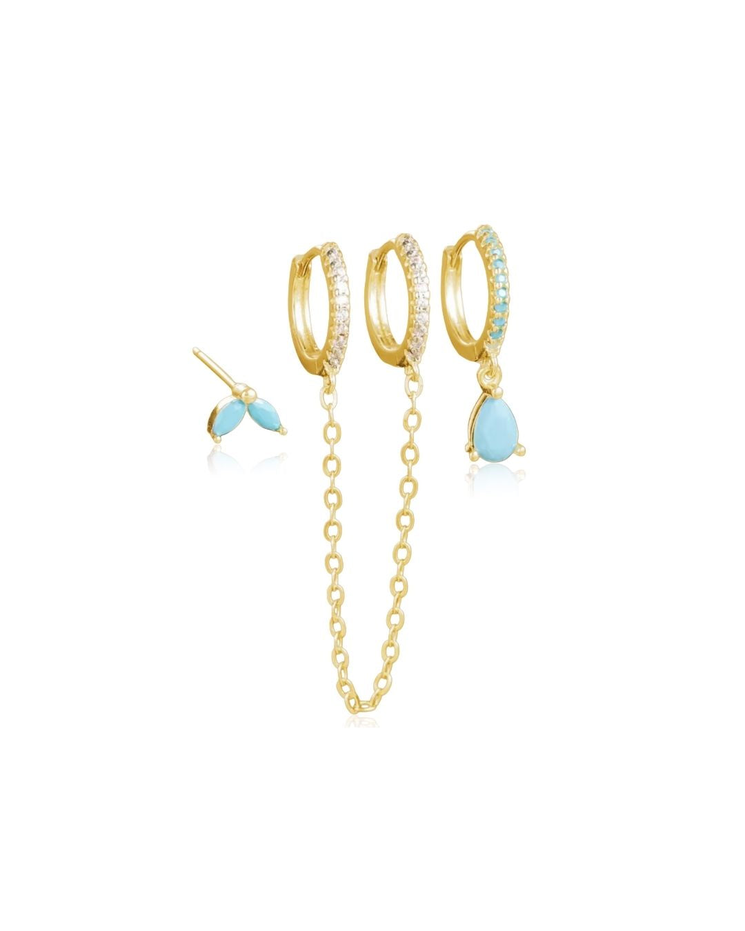 A modern heirloom, the Raya Set features three stainless steel earrings adorned with turquoise zirconia — a fresh pop of sparkle for any look.