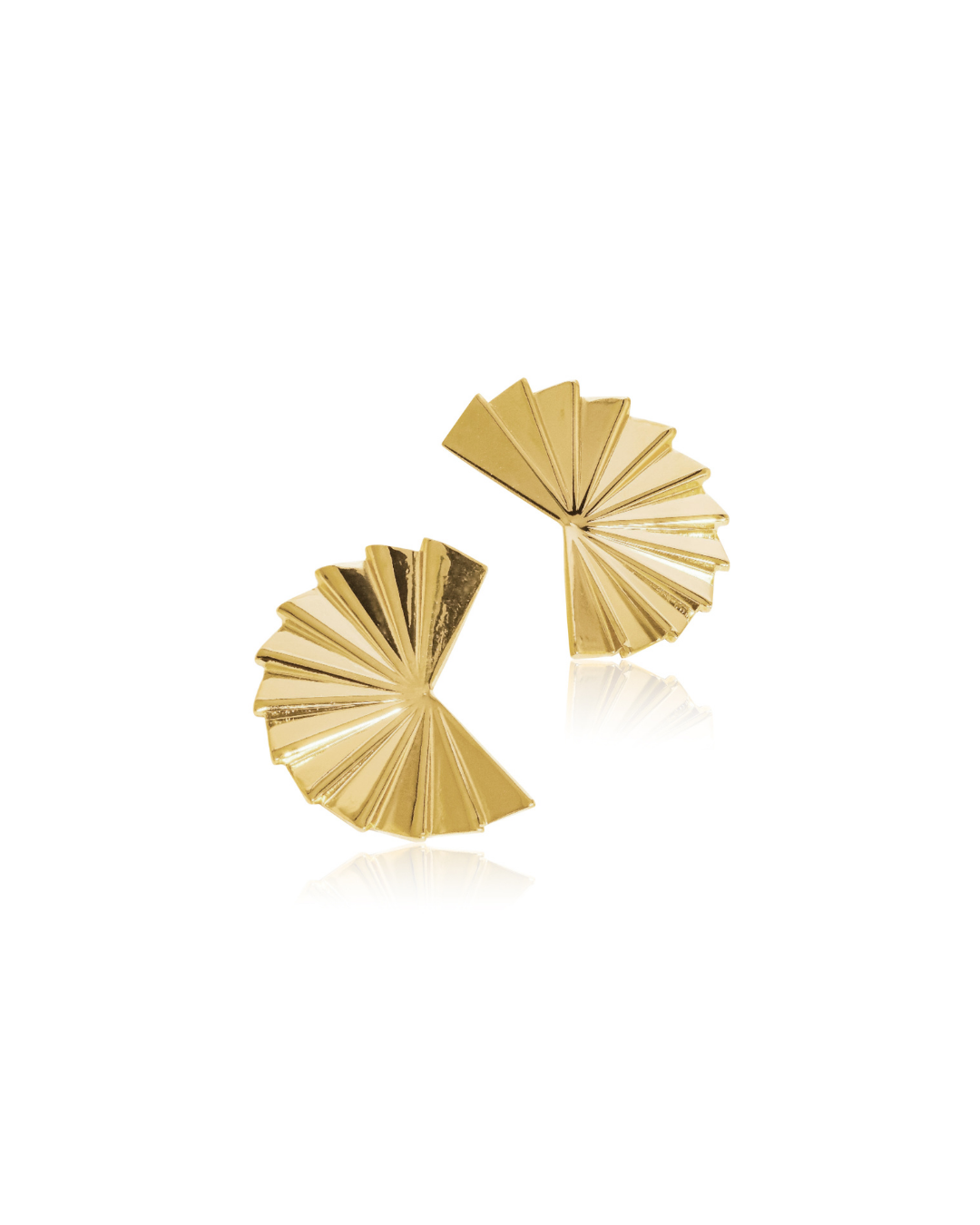 The Solene Earrings feature a folded fan silhouette with sculptural lines and a high-shine finish.