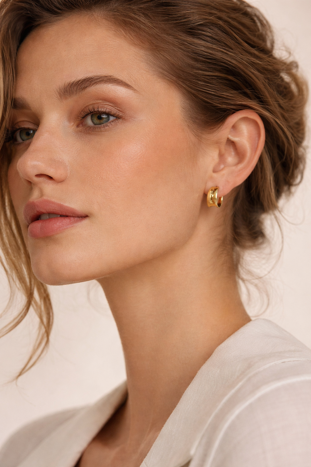 Crafted from hypoallergenic stainless steel with luxurious 18K gold plating, these Yvaine dome hoops deliver timeless elegance without compromise.