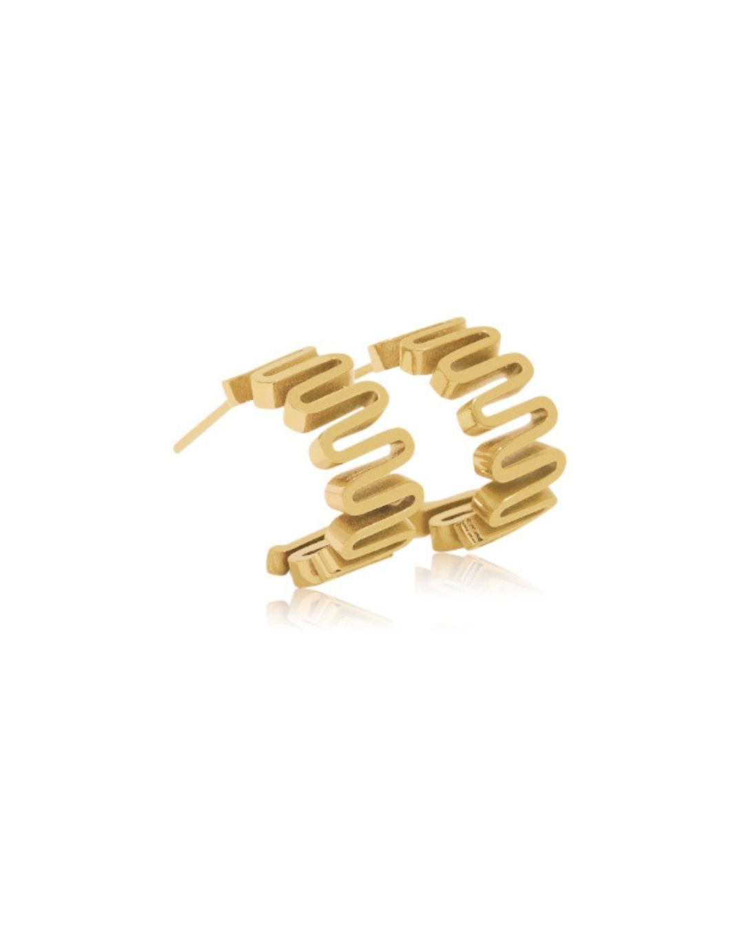 Make a bold yet refined statement with the Aria Hoops—featuring a smooth gold finish and sculptural shape for effortless polish day or night.