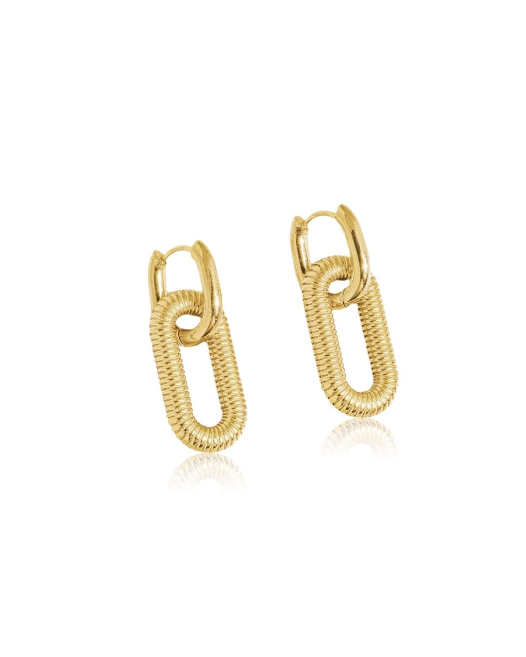 Modern hoop earrings crafted from stainless steel with your choice of 18K gold or silver plating, featuring a double chain detail for added edge and sophistication. Hypoallergenic, water- and tarnish-resistant—perfect for making a bold yet refined statement in any jewellery rotation.