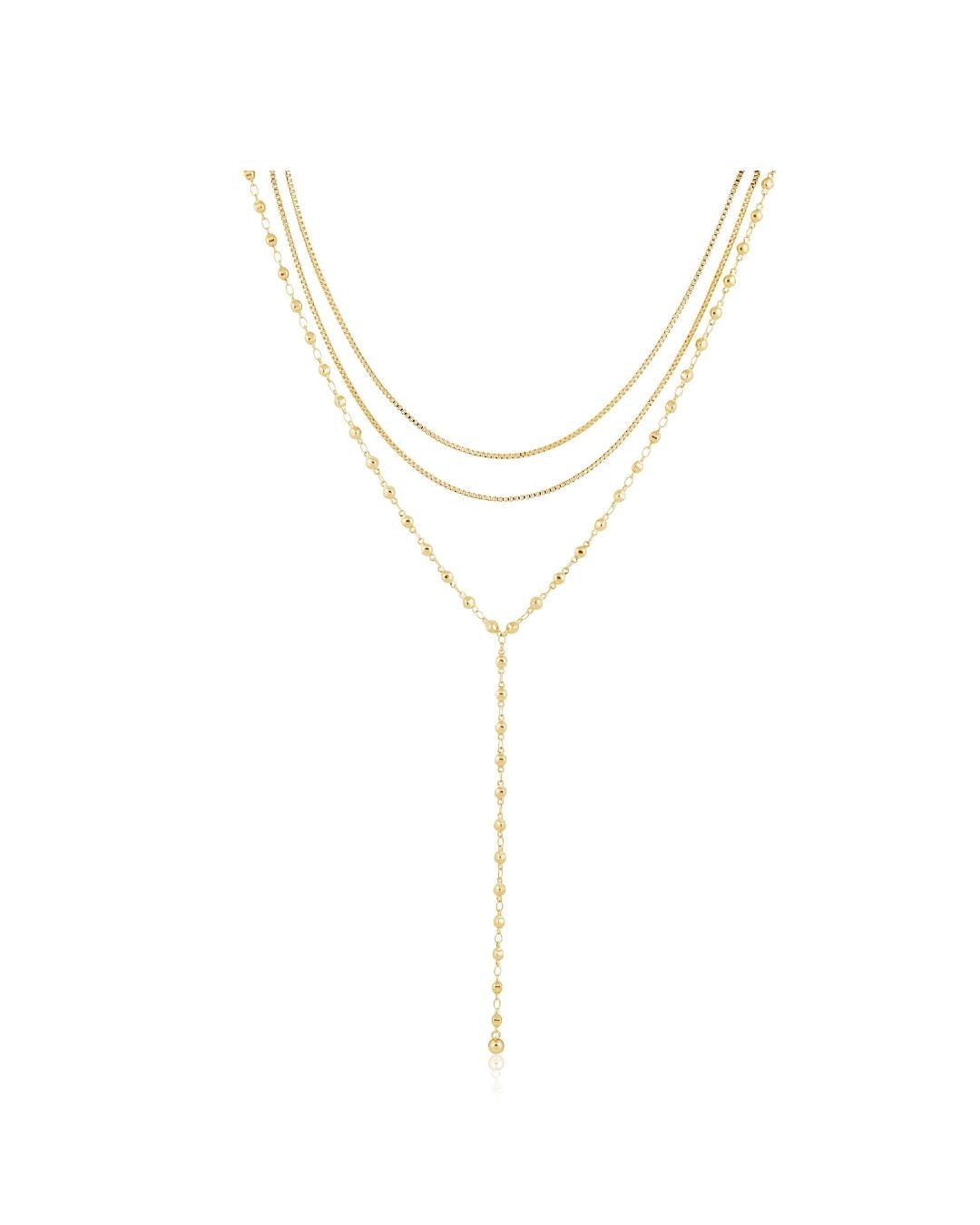 Three-in-one layered necklace featuring mixed textures and an adjustable fit for effortless styling. Crafted from 18K gold-plated stainless steel, this hypoallergenic, water- and tarnish-resistant piece offers a polished, stacked look in a single easy-to-wear design—perfect for elevating everyday outfits.