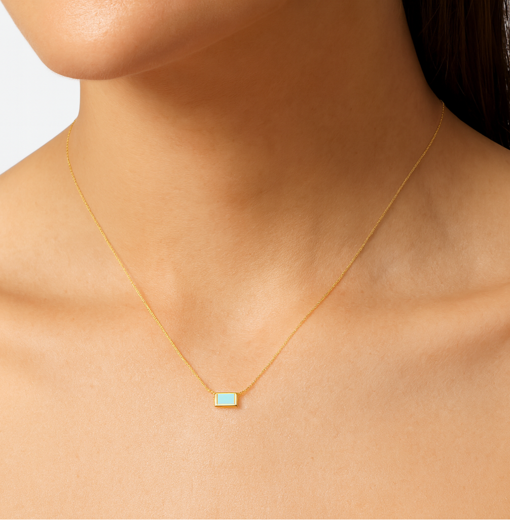 Achieve that chic look with the Willow Necklace, featuring a stunning turquoise CZ stone that adds the perfect pop of color to elevate any ensemble with effortless style.