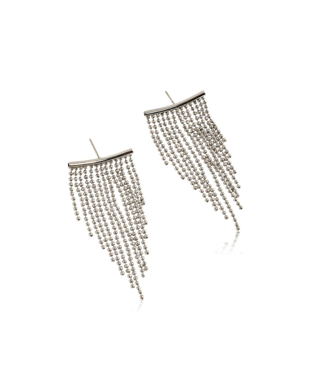 The Colette Earrings feature polished gold posts with cascading tassel chains for elegant movement.
