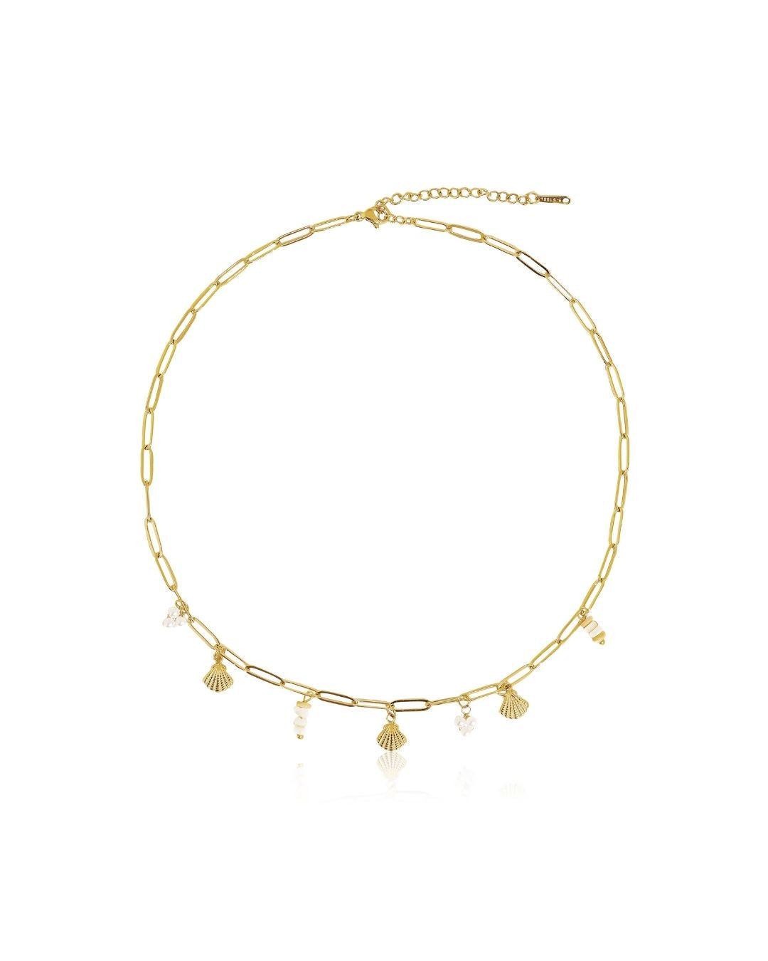 • 18K gold plating on stainless steel with faux pearl and seashell charms