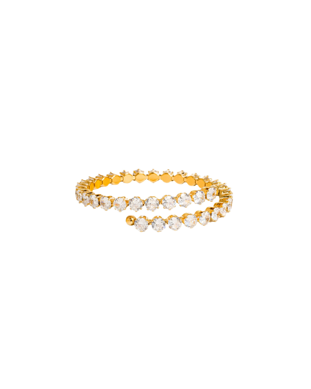 Sleek bangle bracelet crafted from 18K gold-plated stainless steel, featuring light-catching cubic zirconia for glamorous sparkle. Hypoallergenic, water- and tarnish-resistant—perfect for adding timeless elegance and refined shine to any occasion.