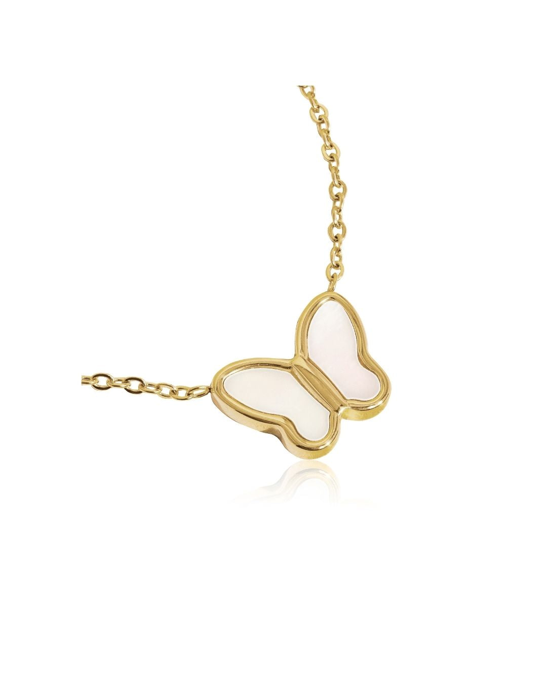 A modern heirloom, the Petite Shell Butterfly Necklace captures delicate charm with a natural shell pendant in a graceful butterfly shape.