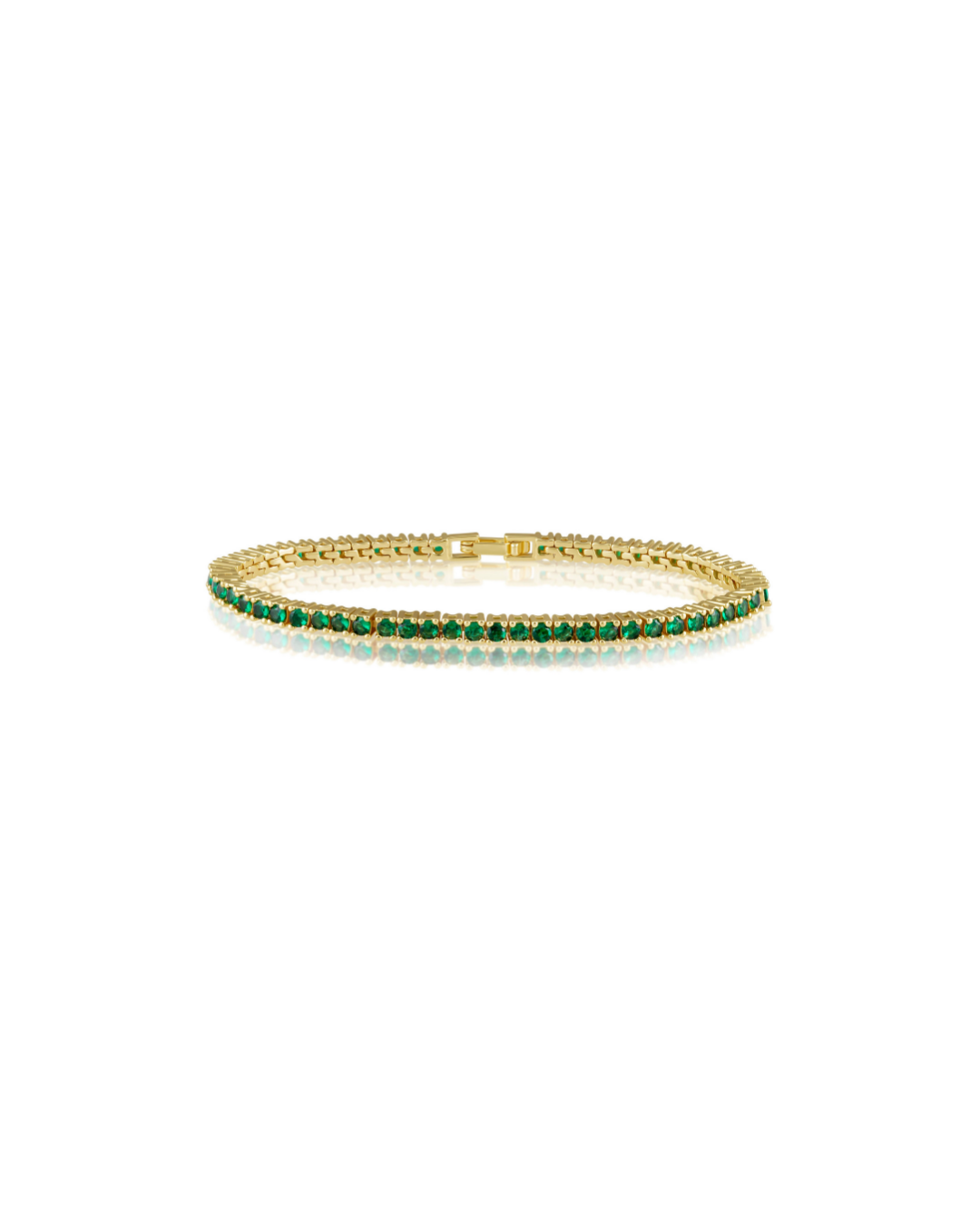 Add a vibrant touch with the Karla Tennis Bracelet in emerald green, featuring sparkling stones that catch light beautifully for joyful pop of color and timeless charm.