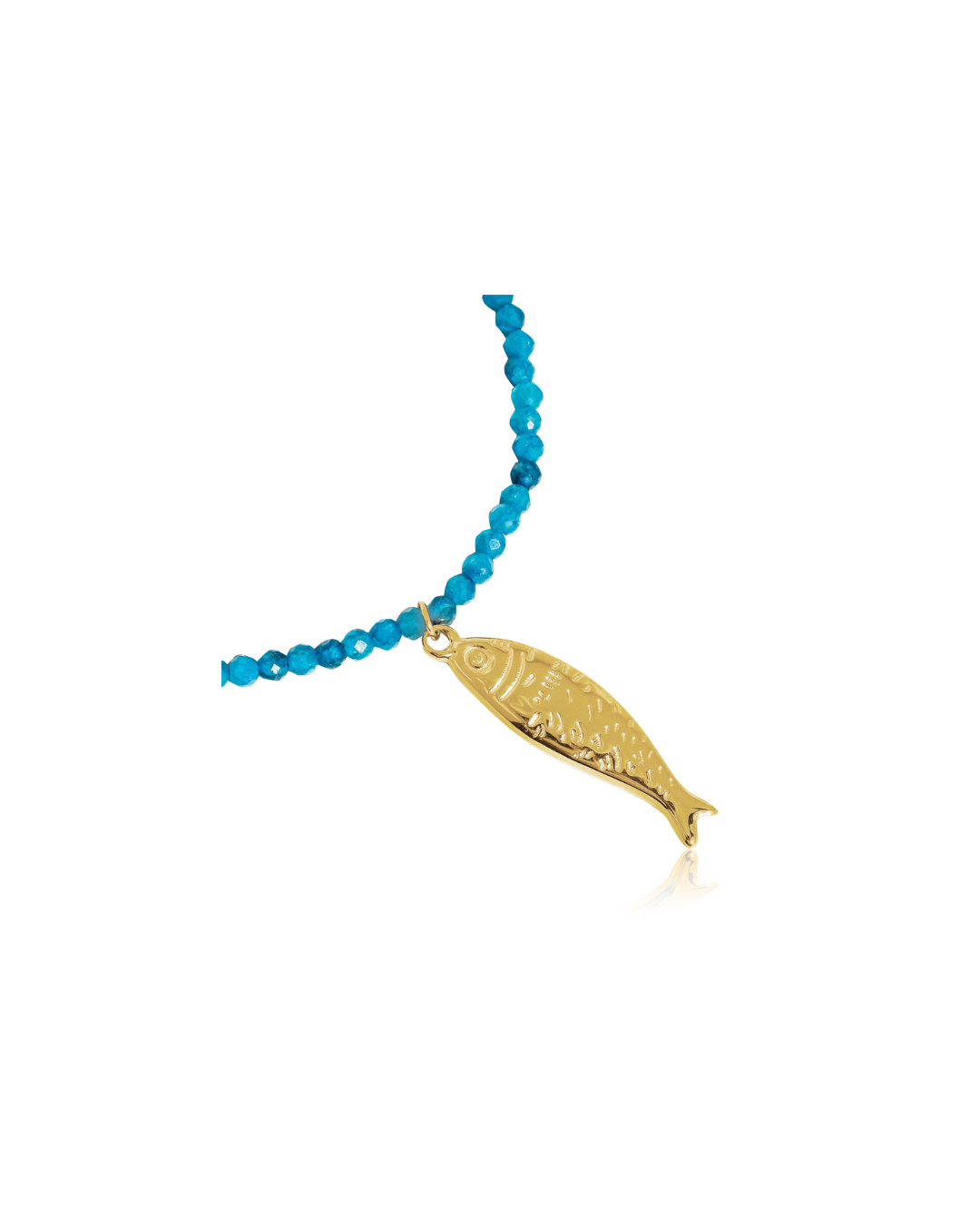 Dive into whimsical elegance with the Marina Fish Beaded Necklace, featuring charming fish pendant on delicate beaded chain for playful oceanic sophistication.