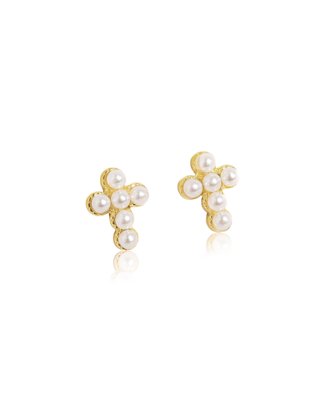 A modern heirloom, the Pearl Cross Stud combines timeless faith-inspired design with the elegance of faux pearls and gold plating.