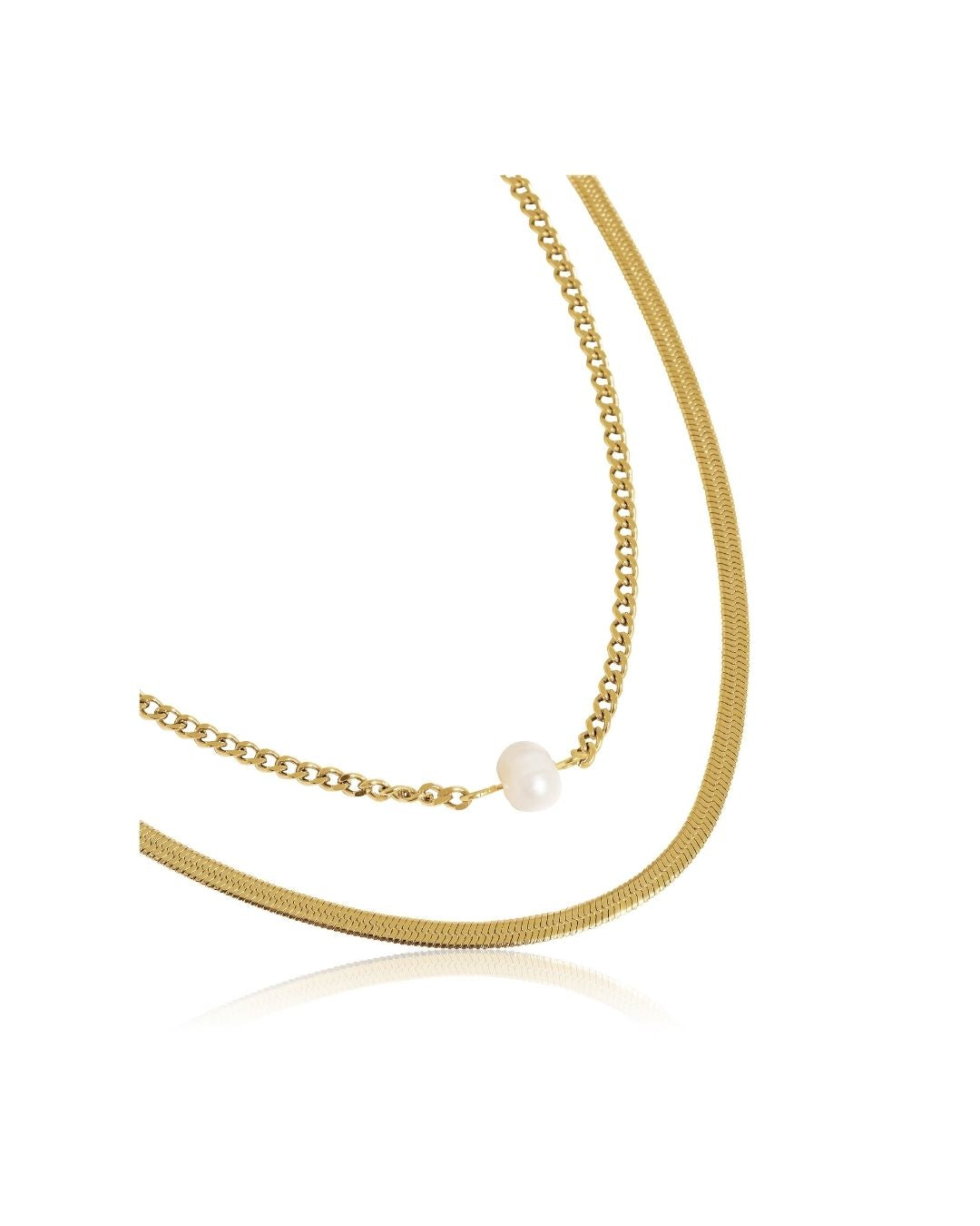 • 18K gold plating on stainless steel with faux pearls, dual chains