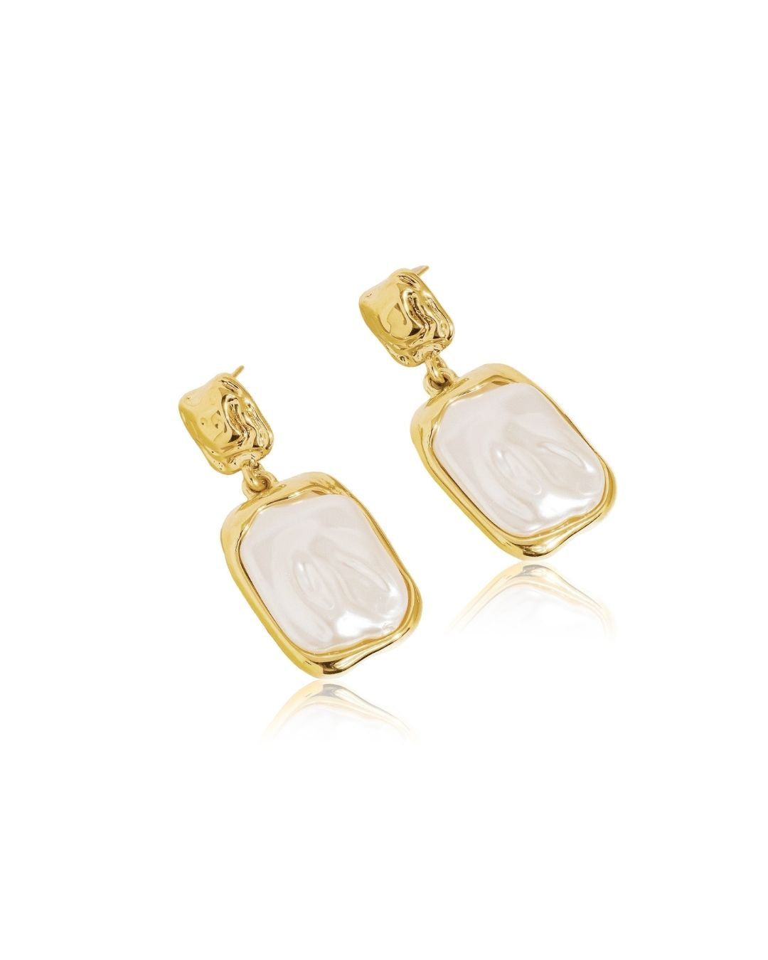 A modern heirloom, the Square Pearl Earrings are a bold yet elegant statement, blending sculptural gold with a luminous faux pearl.