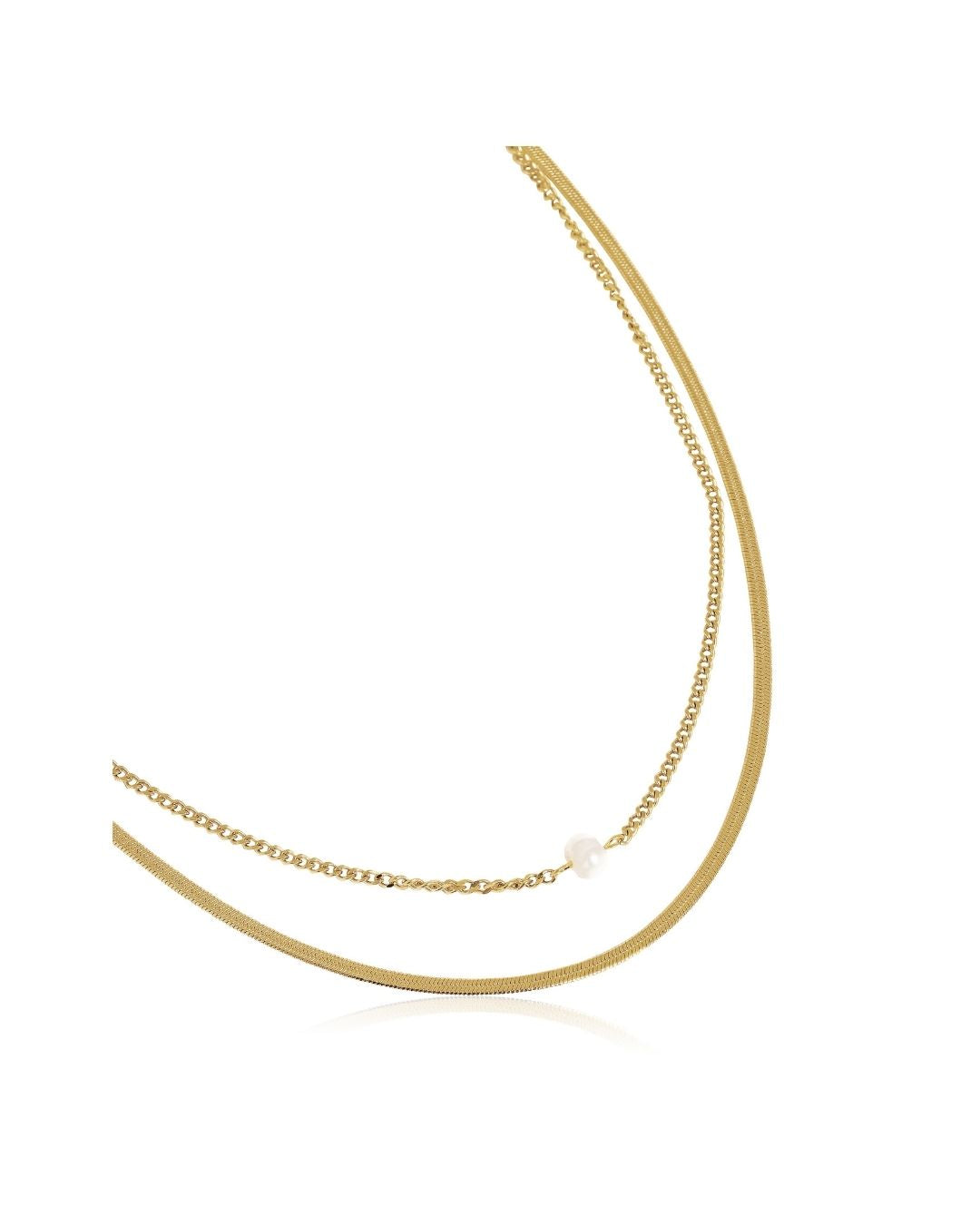 • 18K gold plating on stainless steel with faux pearls, dual chains