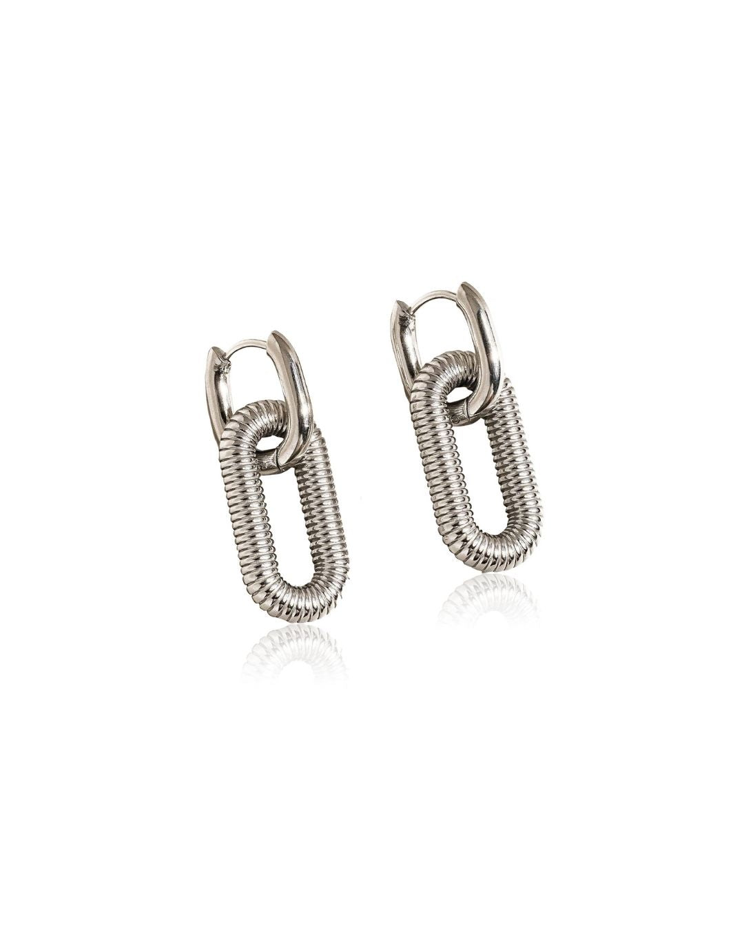 Modern hoop earrings crafted from stainless steel with your choice of 18K gold or silver plating, featuring a double chain detail for added edge and sophistication. Hypoallergenic, water- and tarnish-resistant—perfect for making a bold yet refined statement in any jewellery rotation.