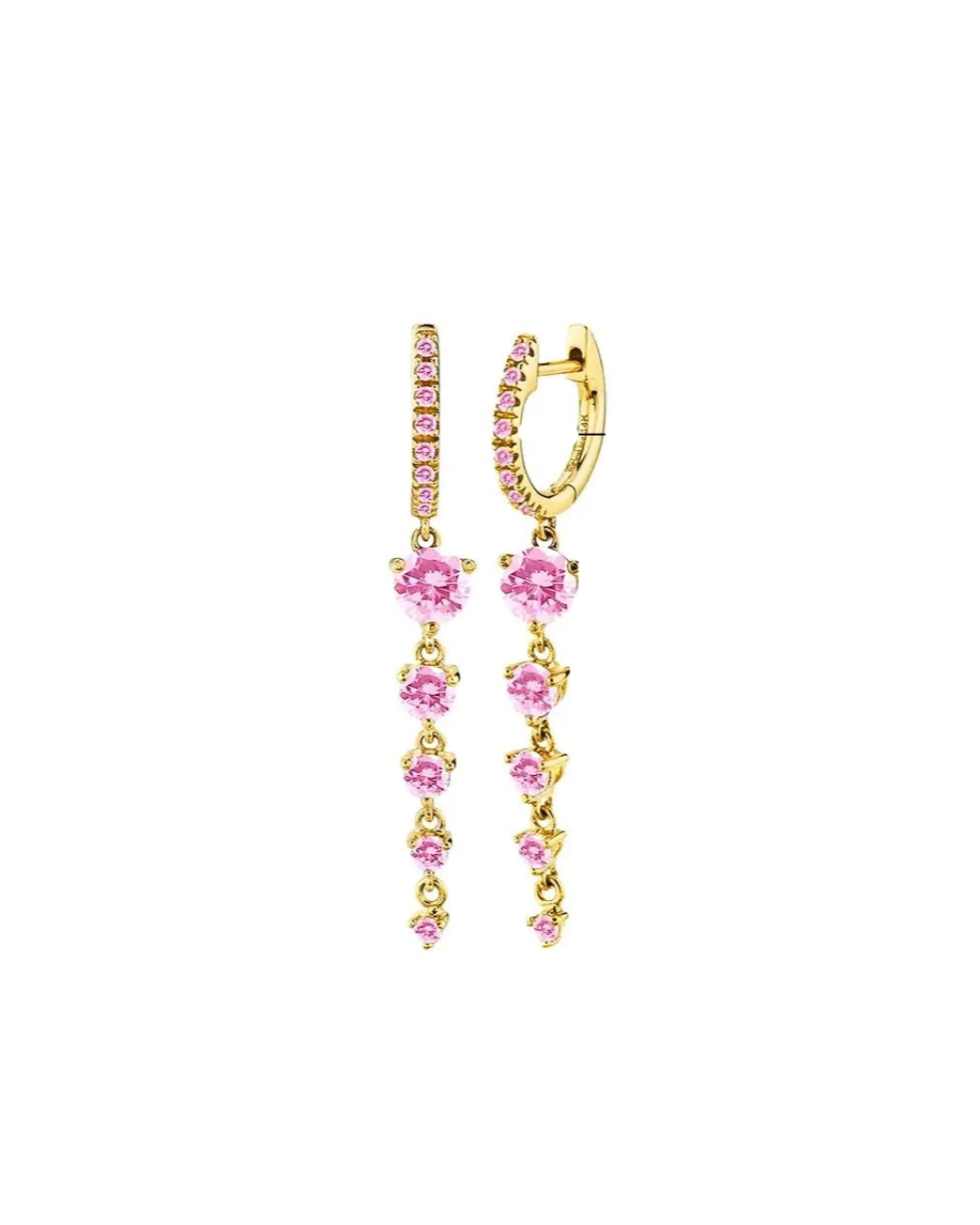 Express romantic elegance with the Brianna Pink Crystal Heart Hoops, featuring luxury geometric pendant design with pink crystals and sterling silver needle for fashionable sophistication.